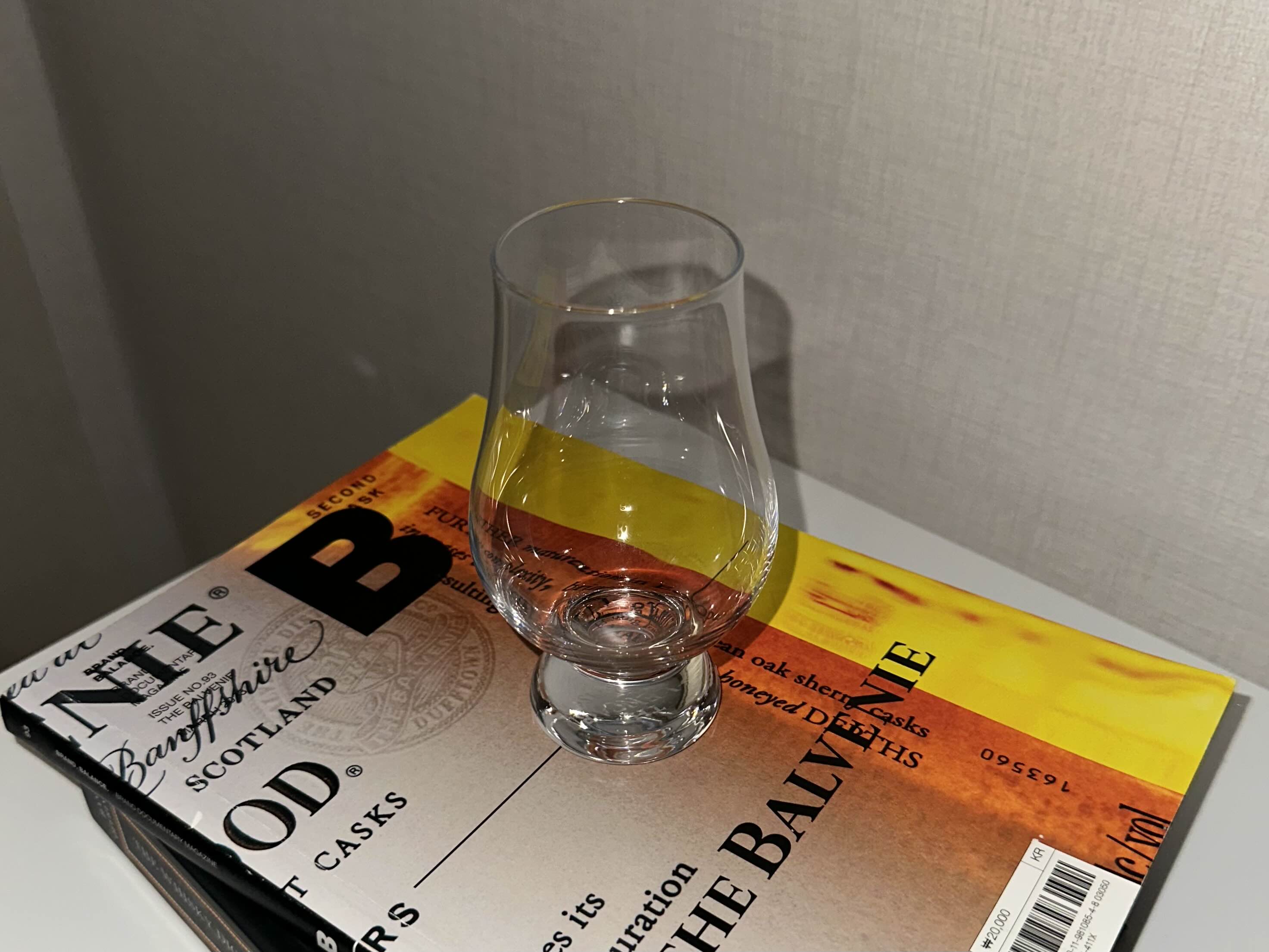 💡 발베니 12년은 위스키 잔 중에서도 향을 모아주기 때문에 더 풍부한 아로마를 느낄 수 있는 글렌케런(Glencairn) 잔을 추천한다.