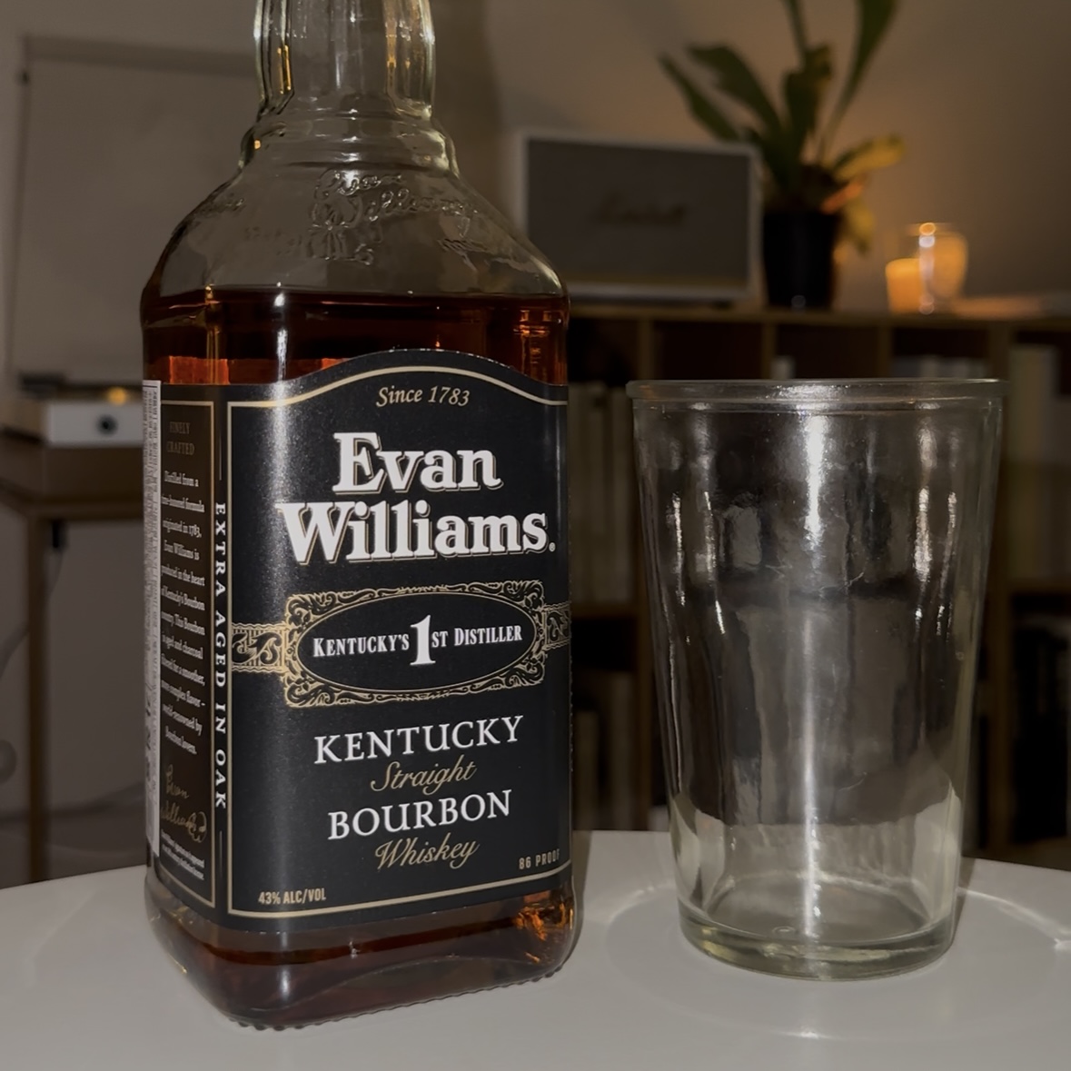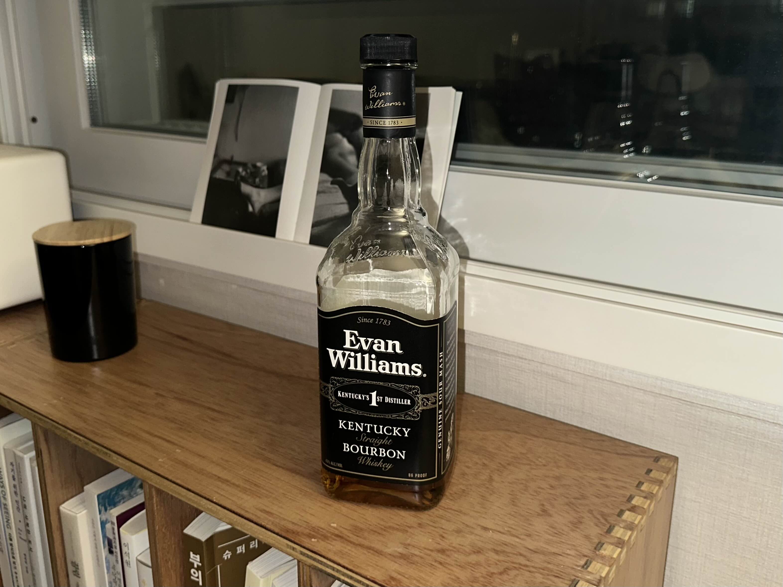 혼술할 때 가볍게 마실 수 있는 위스키를 찾다가 와인앤모어에서 에반 윌리엄스(Evan Williams)를 사봤다. 가격은 750ml 2만 원대 중반~3만원 정도. 부담 없는 가격이라 입문용 버번으로 좋다.