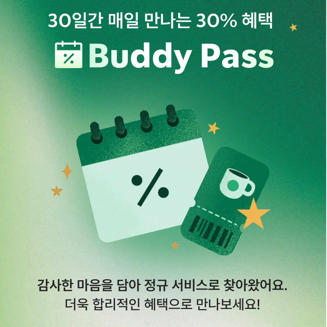 스타벅스를 자주 이용하는 사람이라면, 계산할 때 한 번쯤 “조금이라도 저렴하게 마실 수 없을까?” 고민해본 적이 있을텐데 그런 사람들을 위한 스타벅스의 정기구독 서비스, 버디패스(Buddy Pass)를 소개해보려고한다.