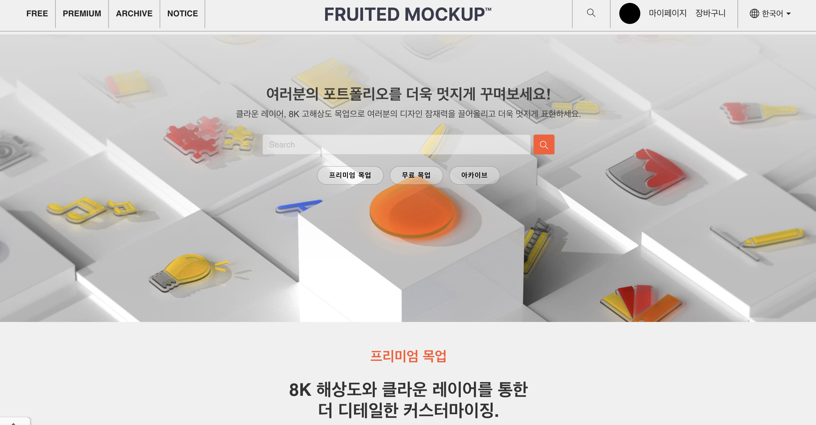 클라이언트 제안을 위한 이미지 제작, 포트폴리오에 올릴 때 목업(Mockup)은 필수 요소다. 목업의 퀄리티에 따라 디자인의 퀄리티가 훨씬 좋아보이기도 한다. 실제로 출력하거나 제품에 입히지 않아도 결과물을 현실감 있게 보여줄 수 있기 때문에 디자이너들은 퀄리티 좋은 목업을 찾는다. 오늘 소개할 목업 사이트는 fruited-design.kr 디자이너가 운영하는 무료 목업 사이트로 국내 사용자에게 최적화된 한글 기반 UI와 고퀄리티 리소스를 제공한다. 목업은 무료로 다운로드할 수 있다.