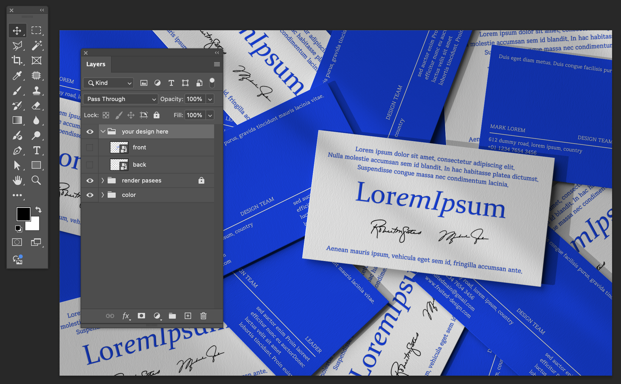 파일을 열어보면 front, back 레이어로 나누어져있고 쉽게 목업을 편집할 수 있다. 고퀄리티 목업이 필요하다면 fruited-design.kr의 무료 목업을 활용해보자.