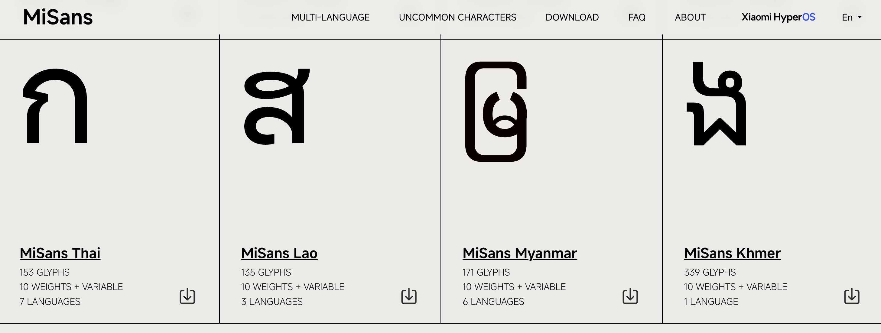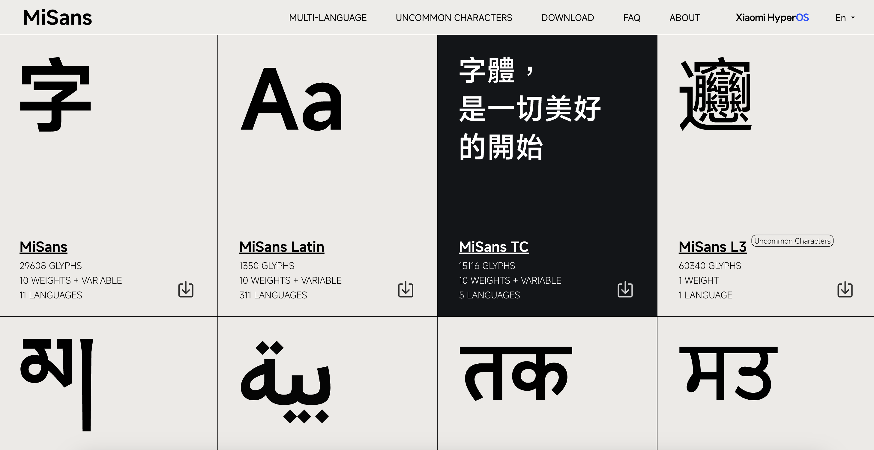 샤오미(Xiaomi)는 자체 폰트인 MiSans를 출시했다.