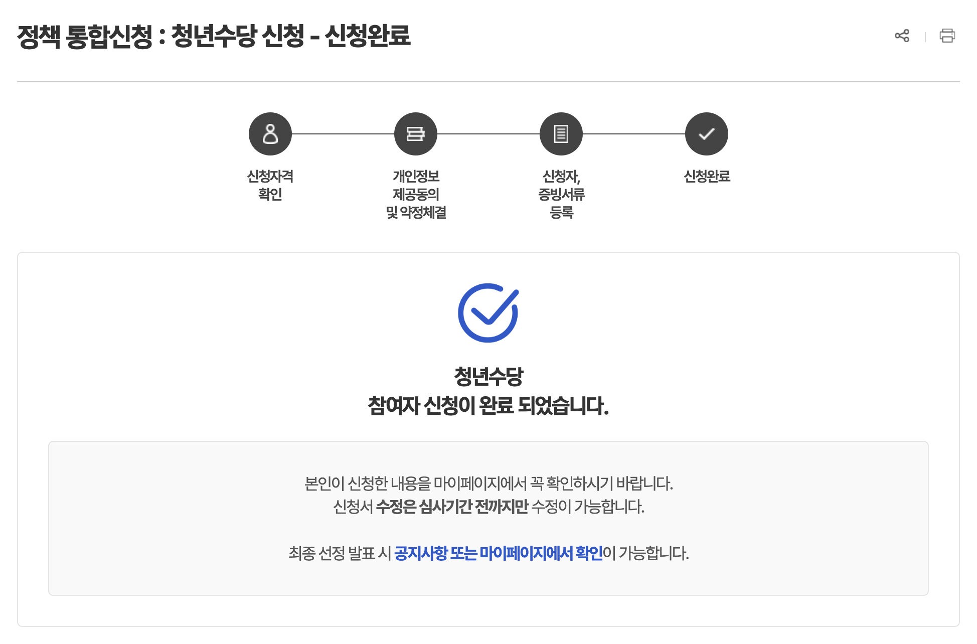 모든 신청서를 작성하고 서류를 제출한 후에는 접수 완료! 이후 심사를 거쳐 선정 결과가 발표되며, 선정된 청년들은 월 50만 원씩 최대 6개월간 지원금을 받게 된다.