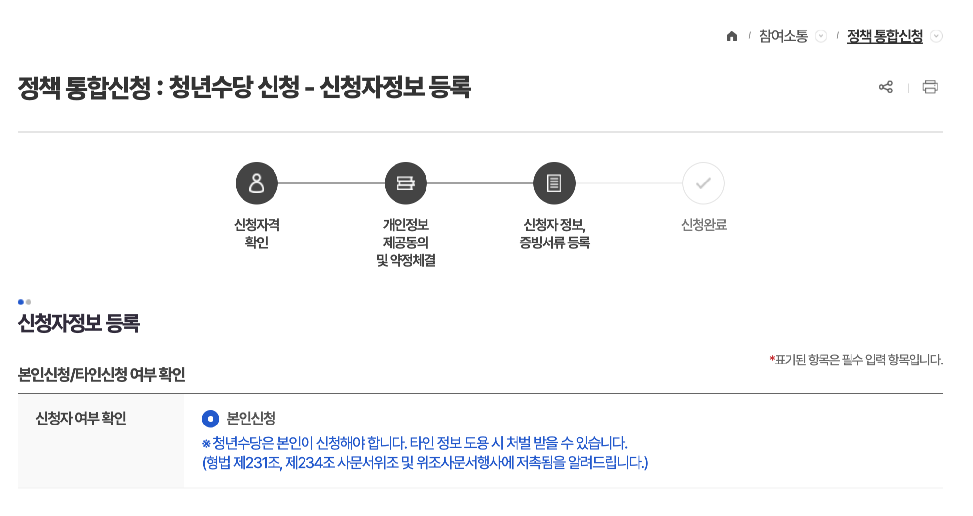 신청을 고민하는 사람들에게 도움이 될 수 있도록 신청 과정을 공유해본다. 청년수당 신청 절차는 예상보다 간단했지만, 두 번의 오류로 인해 재작성해야 했던 점이 아쉬웠다. PC 웹에서 신청하고, 임시저장을 활용하는 것을 추천한다.
